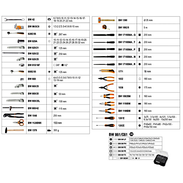Sortiment von 157 Beta Worker Werkzeugen - inkl. Befestigungszubehör