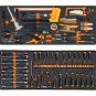 Werkzeugwagen mit 8 Schubladen, lange Ausführung, ausgestattet mit Kippschutz und 1.061 Werkzeugen im Sortiment