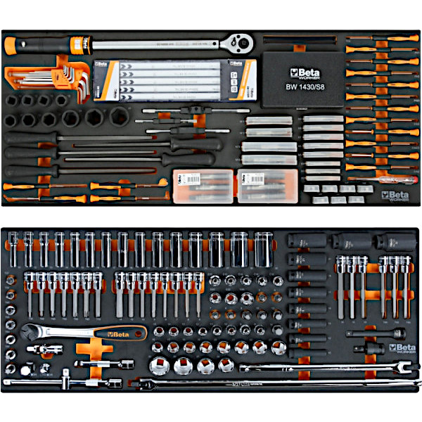 bis zu 8 tiefgezogene Schalen aus EVA-Schaum oder ABS (Schublade mit Abmessungen 1.176x367 mm)