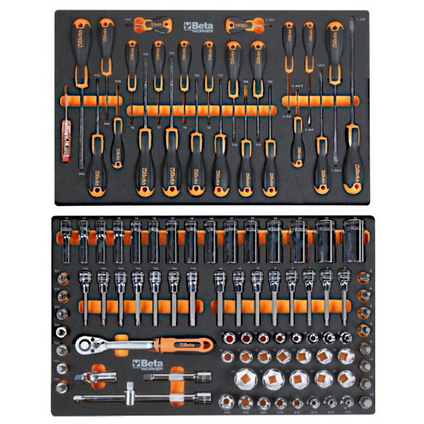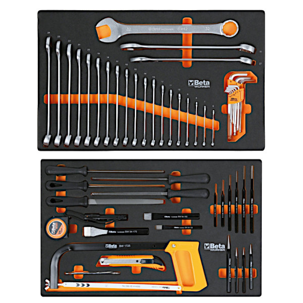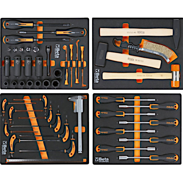 Werkzeugwagen mit 9 Schubladen, mit Anti-Kipp-System, lange Ausführung, mit Werkzeugsortiment, 487-teilig