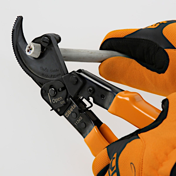 Kabelschneider mit Ratsche zur Verstärkung der aufgebrachten Kraft und zur Reduzierung des Kraftaufwands