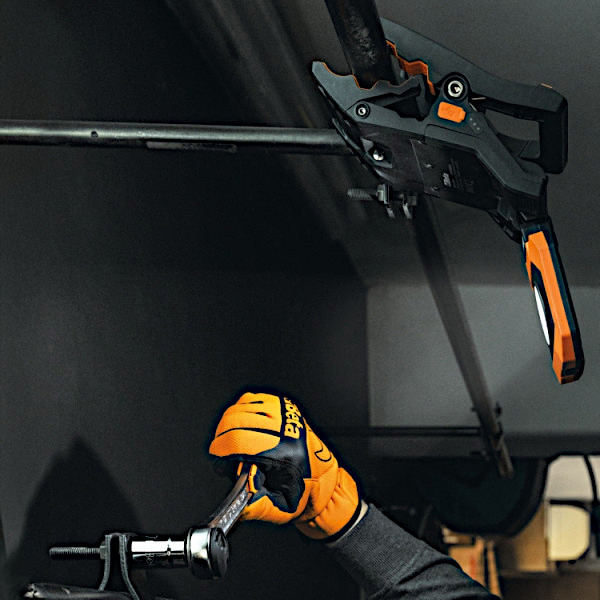 Wiederaufladbarer Klemmscheinwerfer, 4 Lichtstärken, einstellbar, USB-Aufladung.